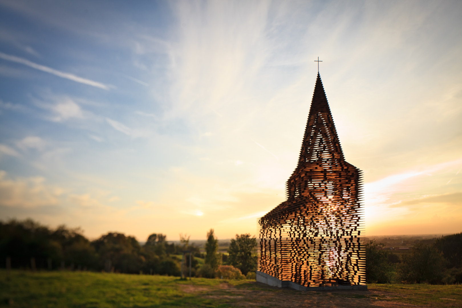 Reading between the lines by artists Gijs Van Vaerenbergh (consisting of duo Pieterjan Gijs and Arnout Van Vaerenbergh) – is an absolute highlight of the Z33 project. Looking like a see-through church, the work is ten metres high and made of 100 layers. Depending on the perspective of the viewer, the church is either perceived as a massive building or seems to dissolve in the landscape. Reading between the lines was named ‘Best Spot in Belgium’ by renowned British newspaper The Guardian in 2017.